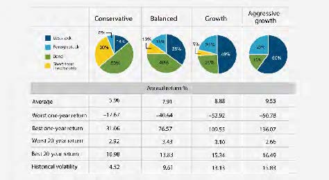 Take a look at our four investment mixes (see chart) and how they performed historically over a long period of time. As you can see, the conservative mix has historically provided much less growth than a mix with more stocks, but less volatility too. Having a significant, age-appropriate exposure to stocks, over time, may help grow savings.